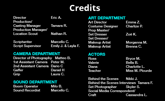 Nikki Jammal created this 'Behind the Scenes' documentary to explain the process of our class #BHSfilm2016 movie-making project.